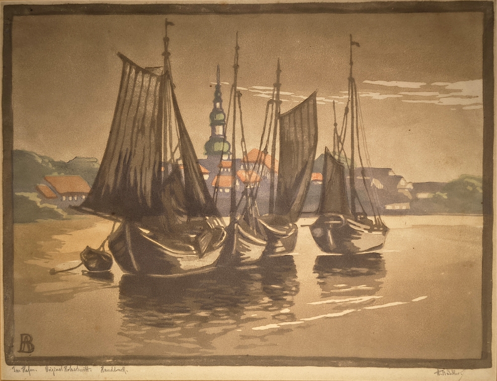 Farbholzschnitt von 6 Druckplatten, 18,5 x 29 cm
