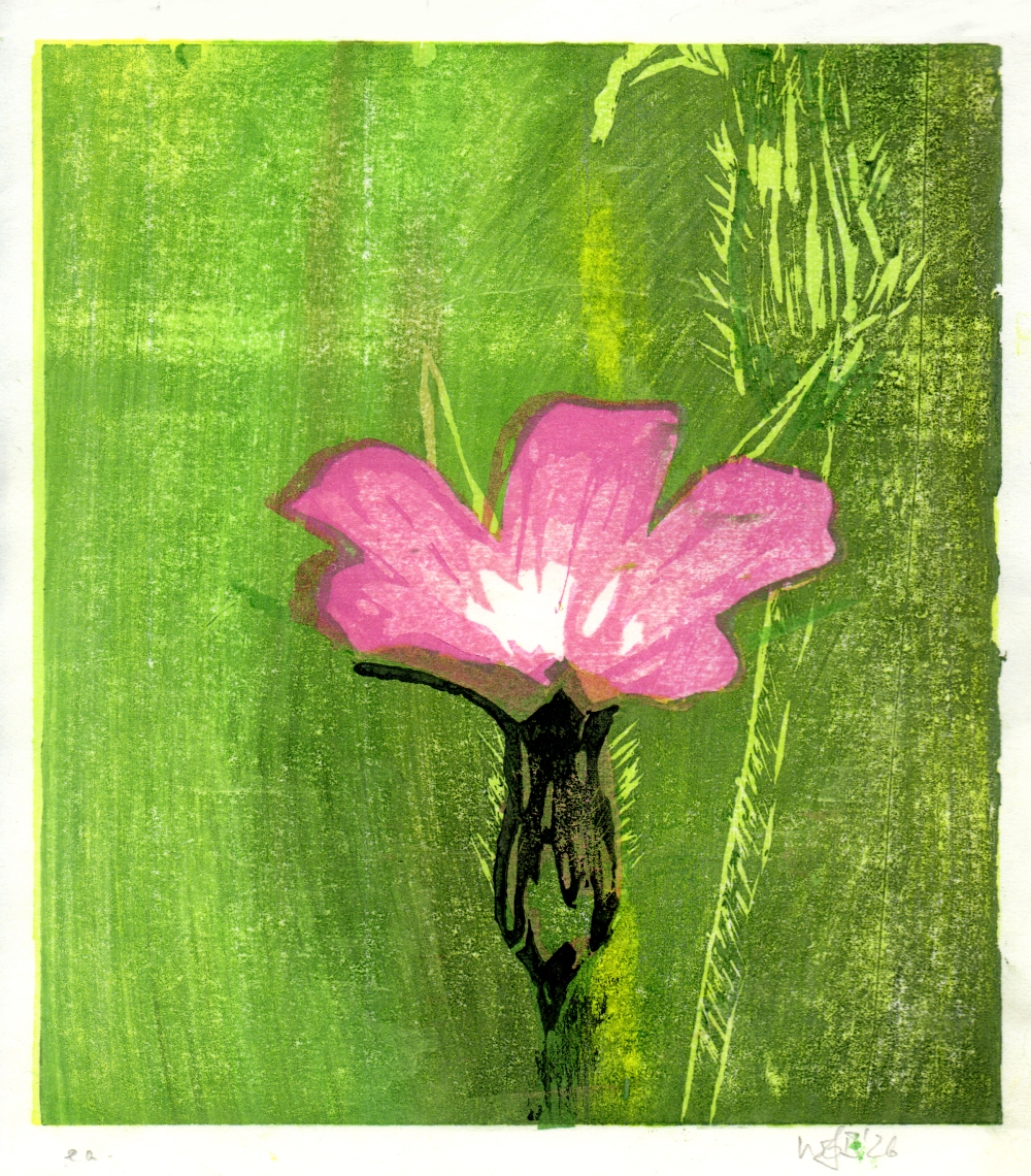 Kornrade Veröffentlicht am12. Februar 202612. Februar 2026AutorWolfgang Barina Wolfgang Barina BLUMENSTUDIE (KORNRADE) Farbholzschnitt von 7 Druckplatten, 21,5 x 19 cm Februar 2026