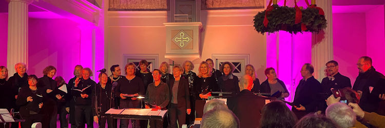 „Mit diesen Weihnachtskonzerten verabschiedet sich der Gründer der Rhein-Main-Vokalisten, Jürgen Blume, als Chorleiter nach 25 wunderbaren Jahren – und was könnte zu dieser besonderen Gelegenheit anderes erklingen als seine variationsreichen Bearbeitungen internationaler Weihnachtslieder!“